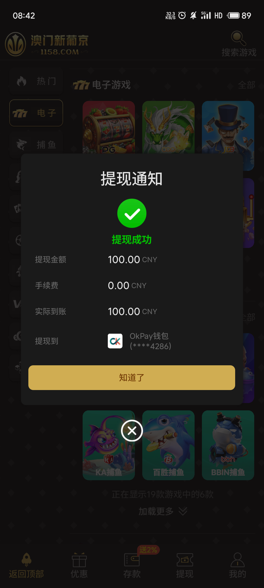 1158.com碰瓷短信28彩金,打到200贪了,提了一百,秒到