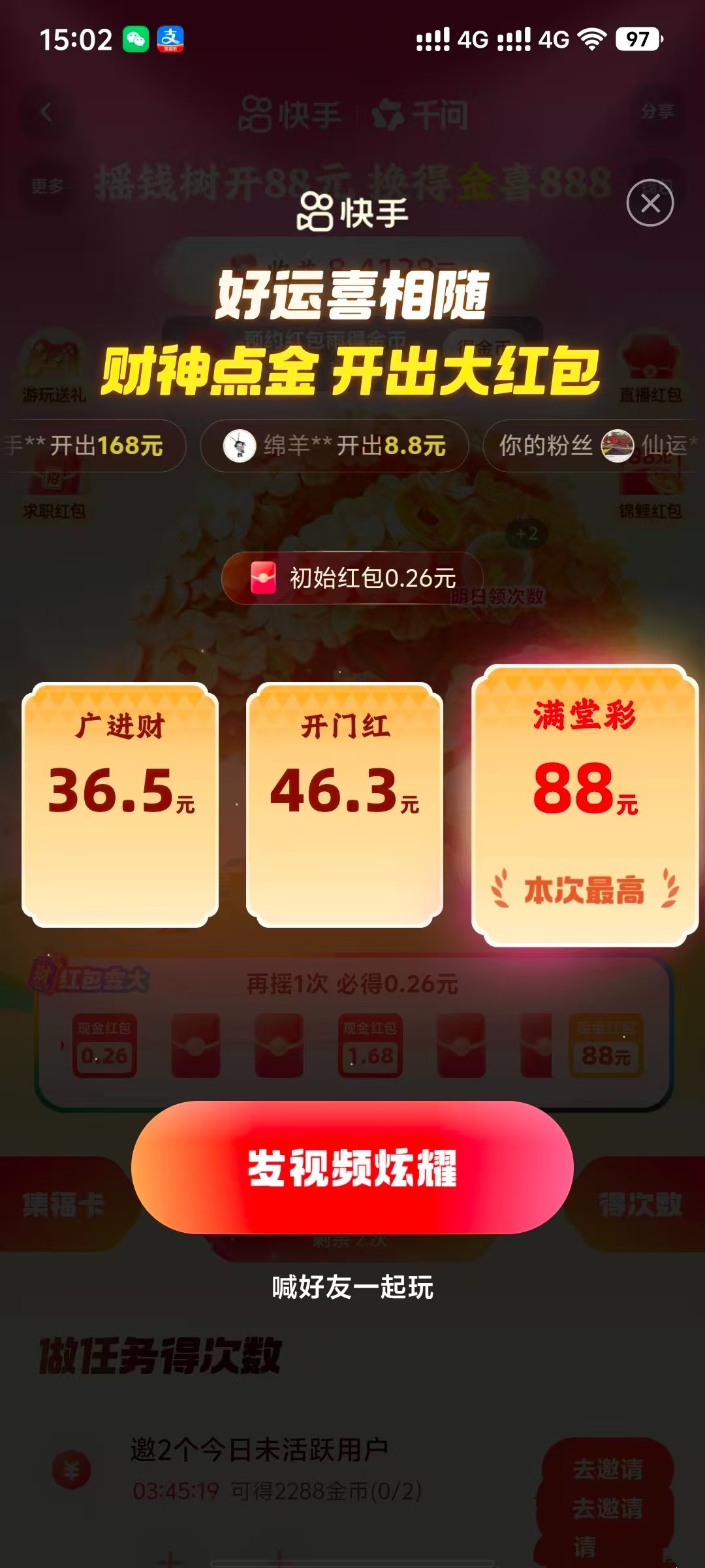 送了18 提了300不知道到不到 去碰瓷客服
