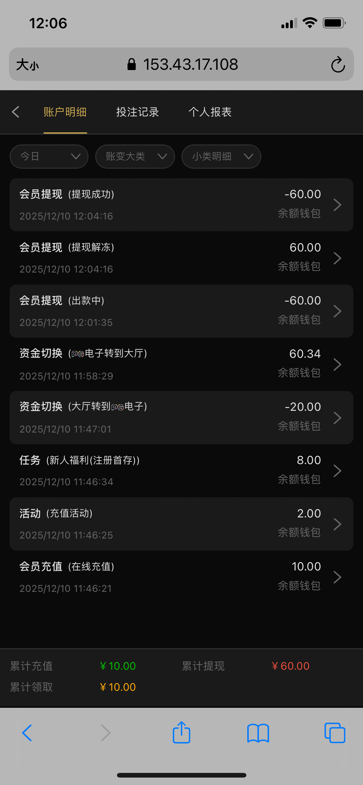 1158.com 提现到账了 只能pg wg 没啥水