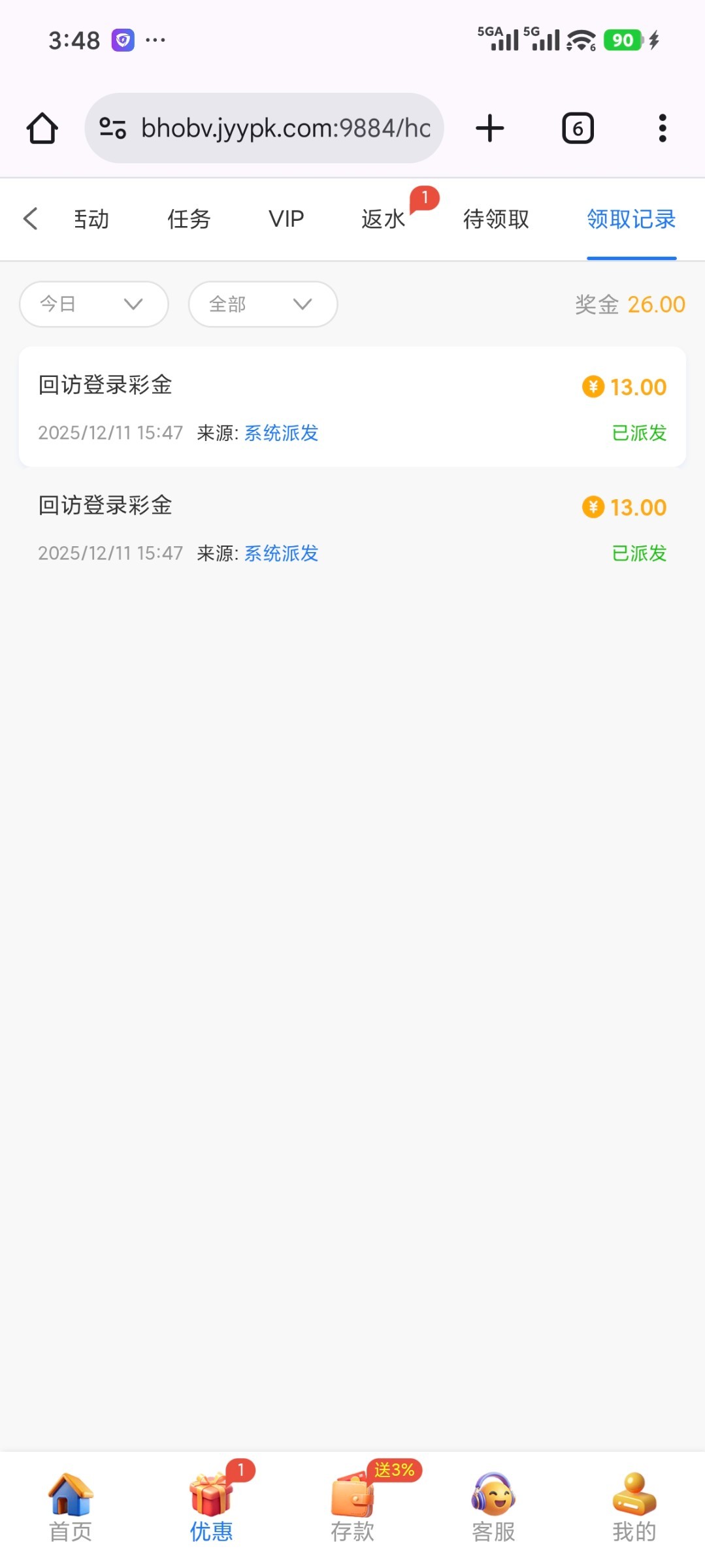 接到电话上号领了26 上去看看有没有 只能玩电子3倍