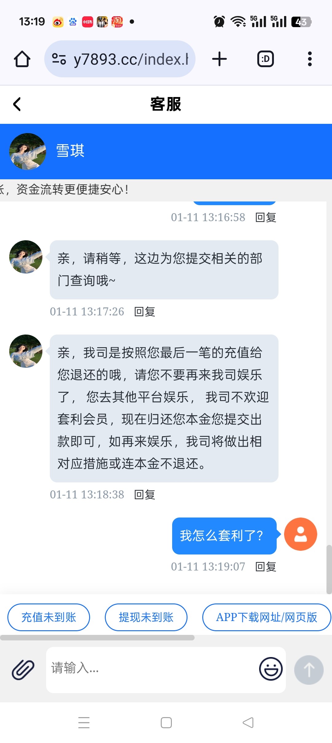 这个大黑台大家千万别去玩,就是想和我们韭菜的。赢了了退本金。输了就白输了。因为是隔壁论坛链接注册的才退了本金,不然本金都被黑