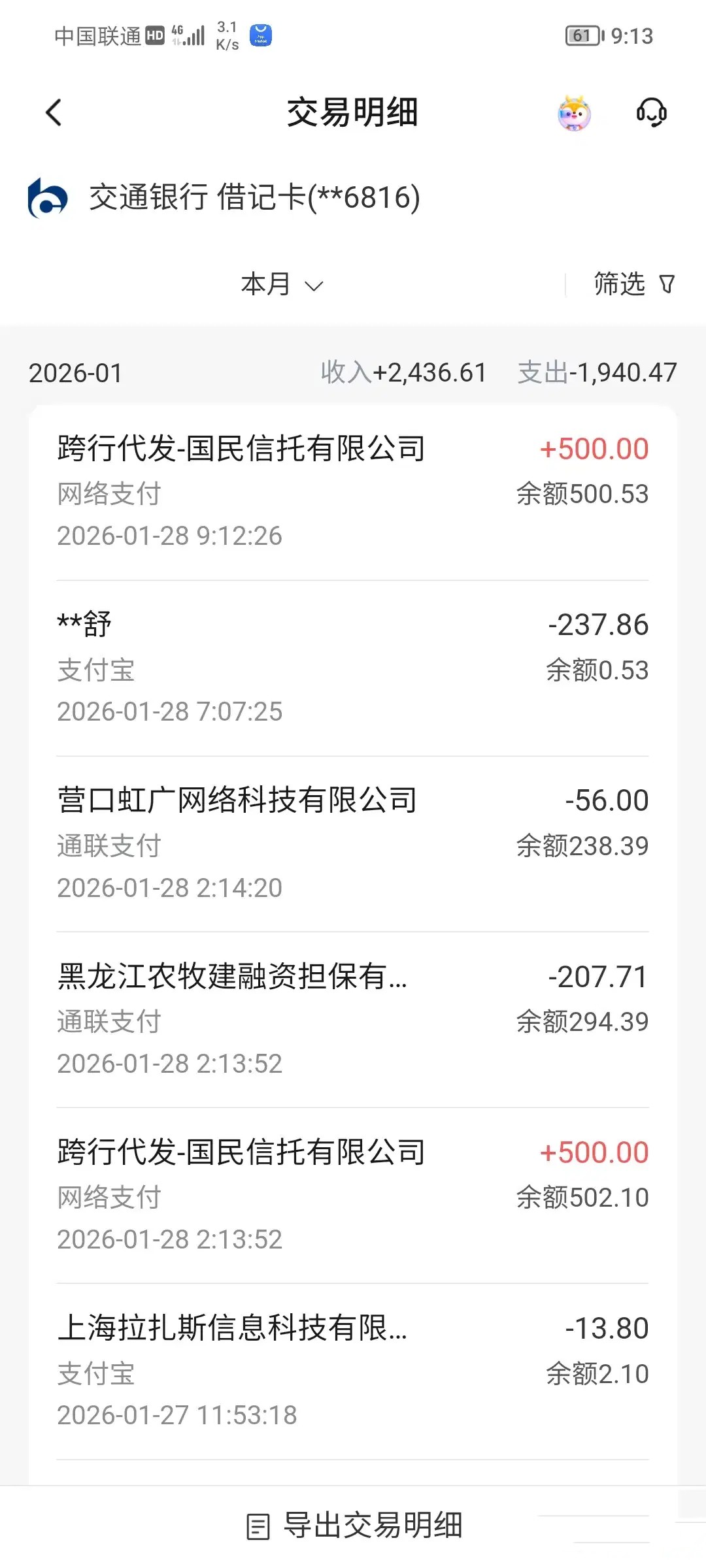 事情这样的,我1月16号申请了1000,然后自动改成了500,我看老哥们说开会员有几率,我就先用后付开了会员,56块。一直显示放款中。直到今天也就是28号凌晨放款了,但今天也是那个之前立减金还款日扣了207和会员费,我就加企业微信客服直接说退会员。刚发完消息没几分钟网登上去,显示还是500能借,手痒试一下,好家伙,又放款了。这。。。。老哥们可以去试一下,还能点借款的话