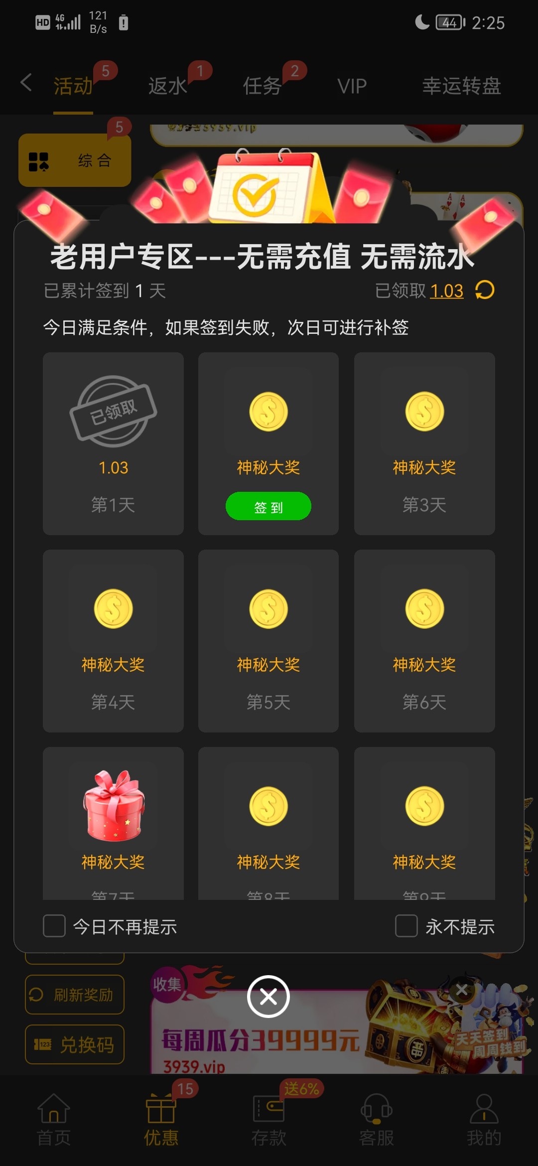 【威尼斯人3939】 老用户签到