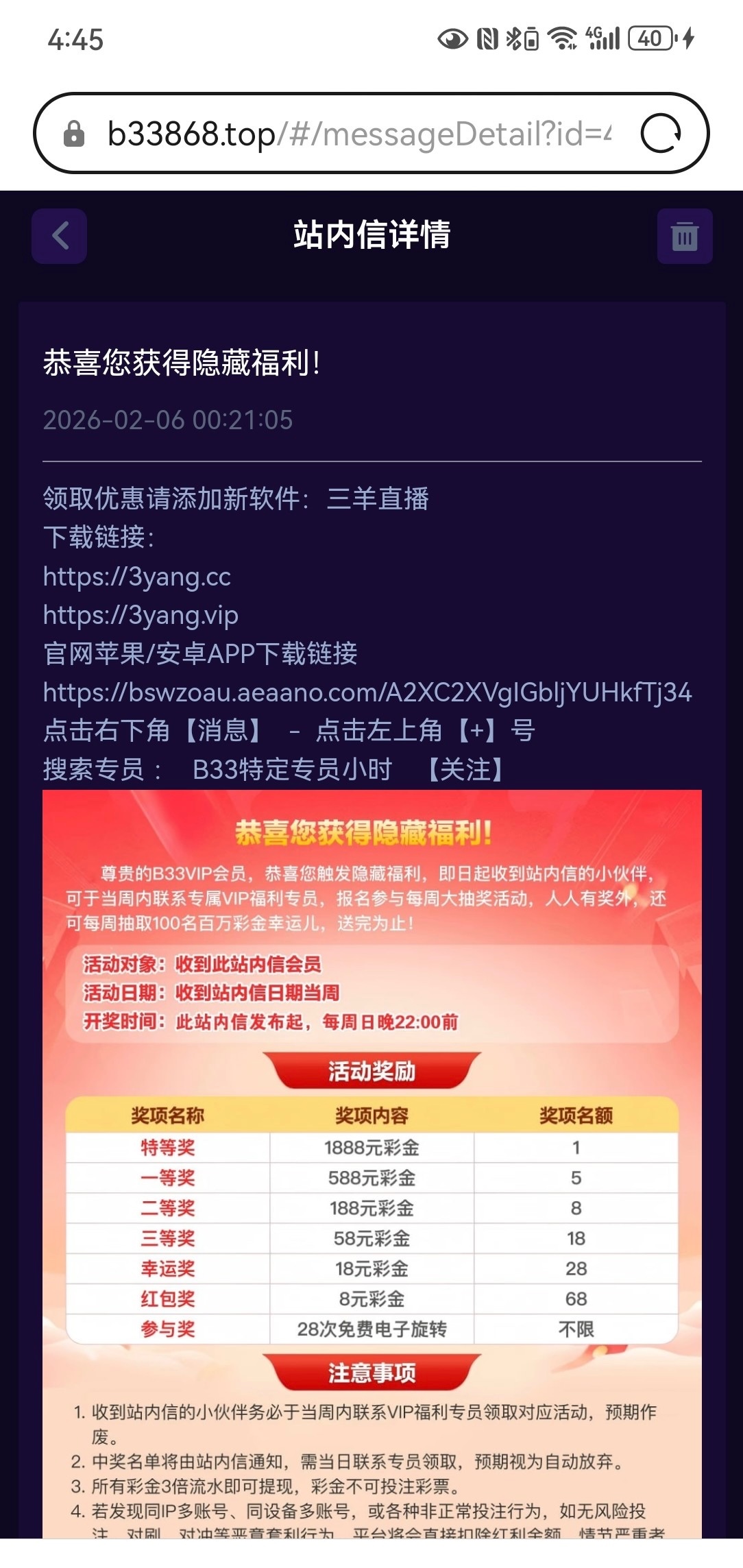 【b33】—✅—站内信彩金