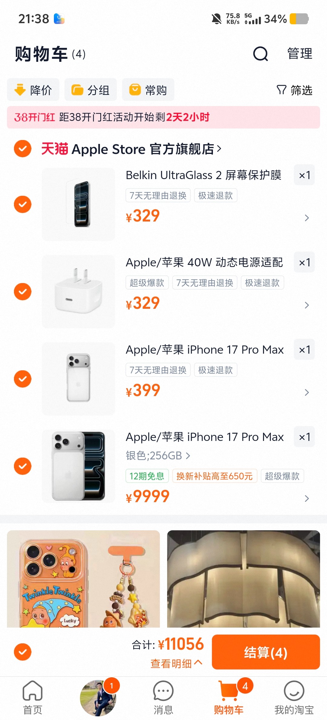 一个手机壳399块,一块钢化膜更是高达300块,不过是精彩系狗庄的钱就算了,不心疼。