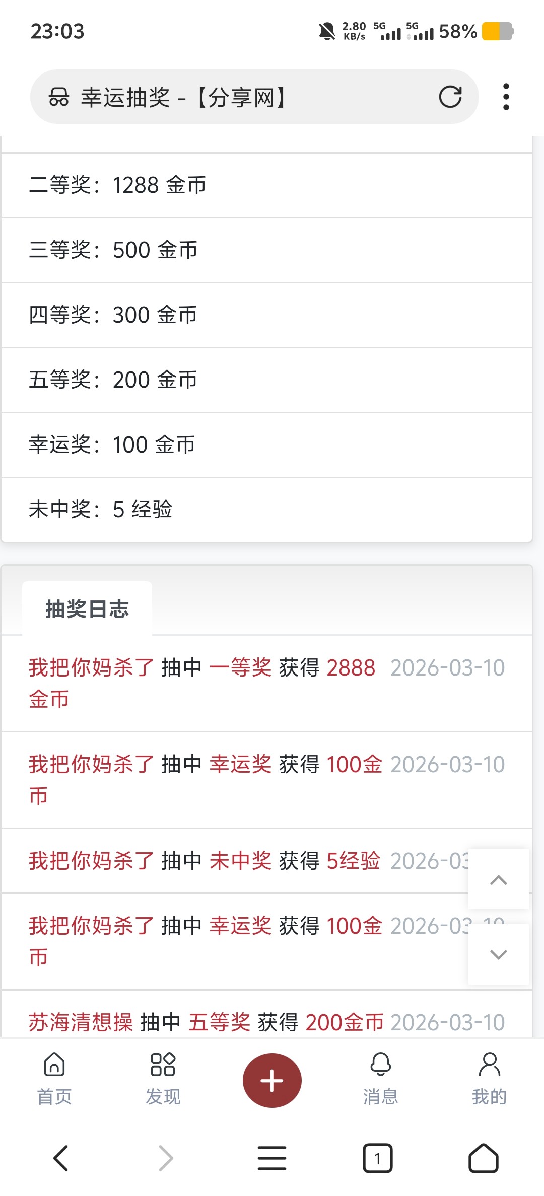 牛逼,抽奖3次,拿了到一等奖2888金币
