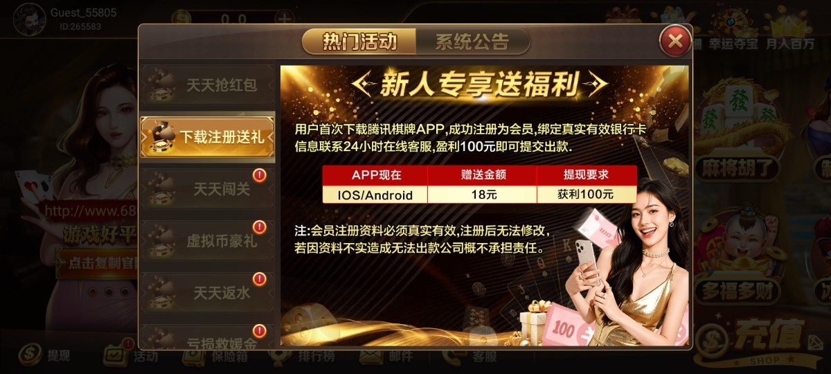 【腾讯棋牌】 注册送18