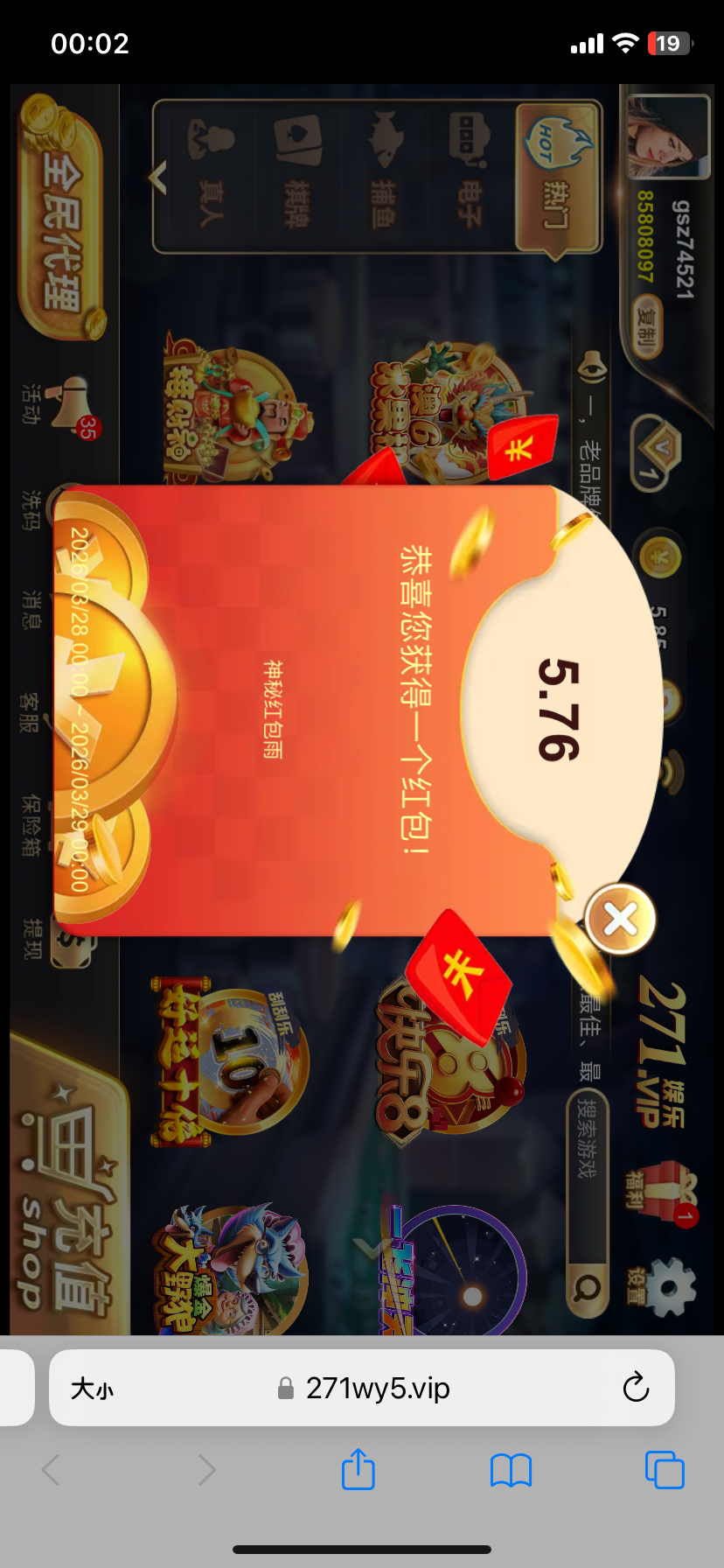 271棋牌 红包雨
