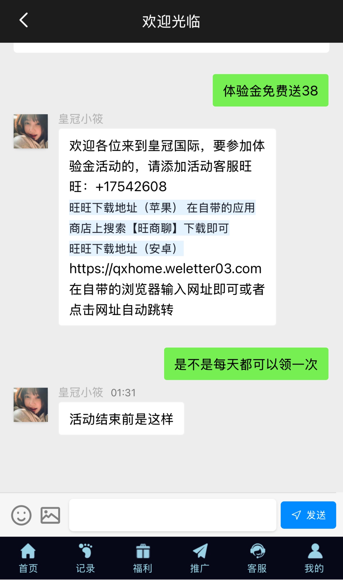 找在线客服领取